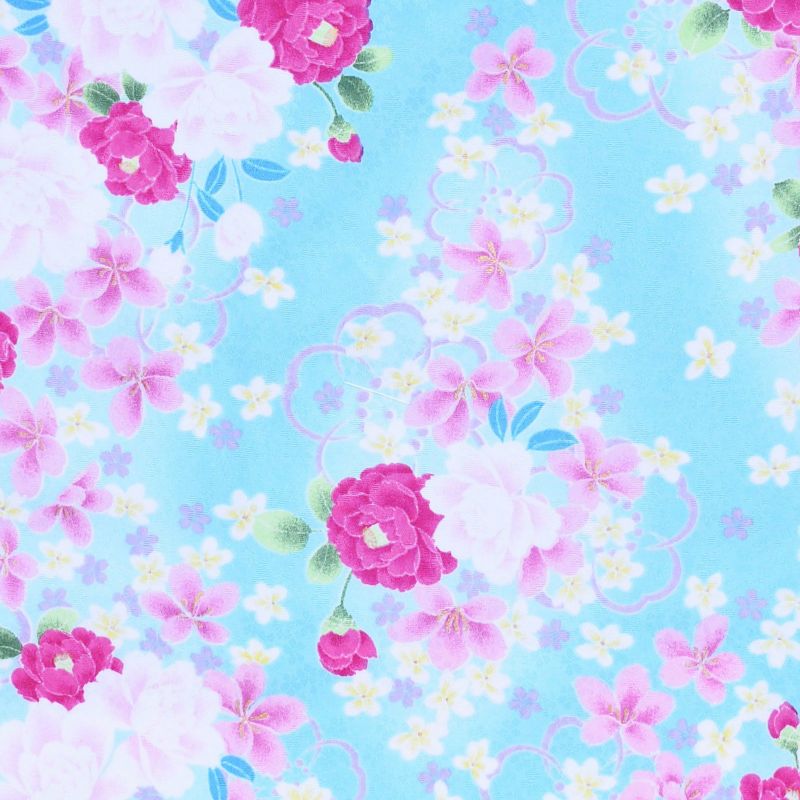 6. 【Prices down】袷着物 単品 「薄水色 牡丹と椿」 フリーサイズ 着物 小紋 洗える着物 お仕立て上がり 普段着きもの カジュアル着物 レディース ポリエステル 【メール便不可】ss2403kck20