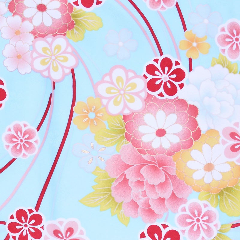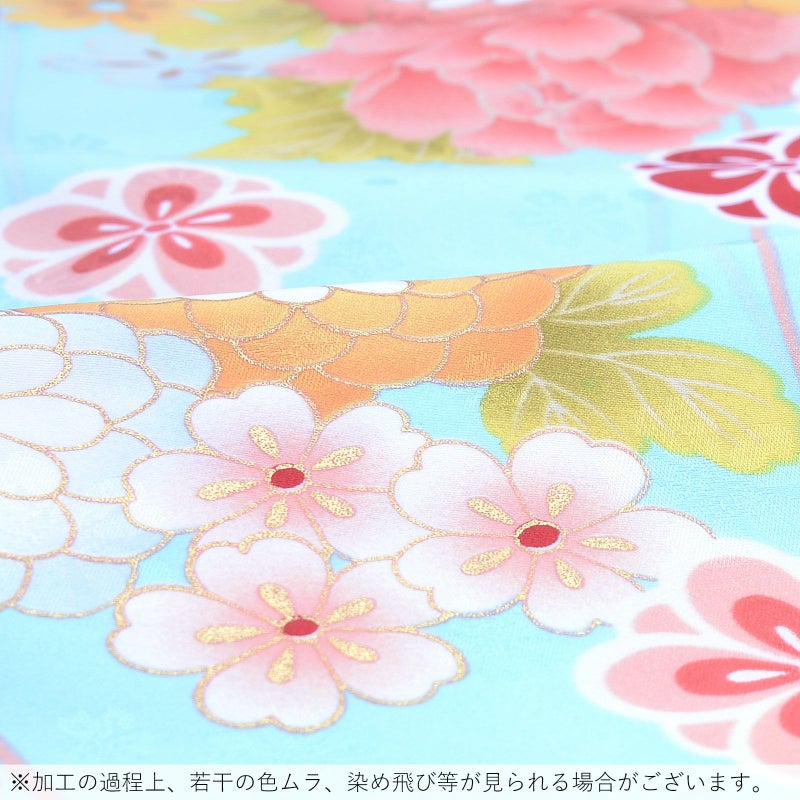 3. 【Prices down2】袷着物 単品 「水色地 牡丹・菊・梅・リボン」 フリーサイズ 着物 小紋 洗える着物 お仕立て上がり 普段着きもの カジュアル着物 レディース ポリエステル 【メール便不可】ss2603kck25