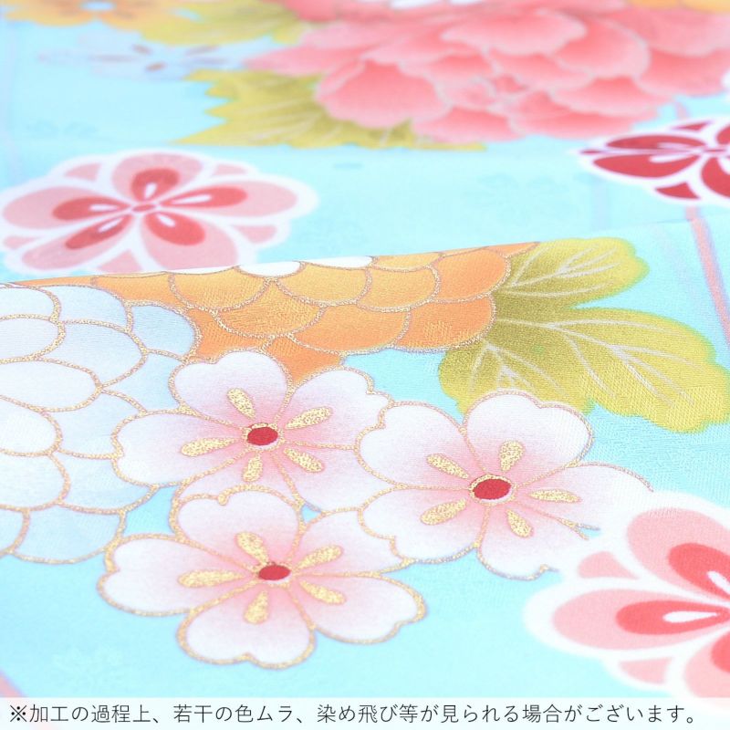 3. 【Prices down2】袷着物 単品 「水色地 牡丹・菊・梅・リボン」 フリーサイズ 着物 小紋 洗える着物 お仕立て上がり 普段着きもの カジュアル着物 レディース ポリエステル 【メール便不可】ss2512kck15