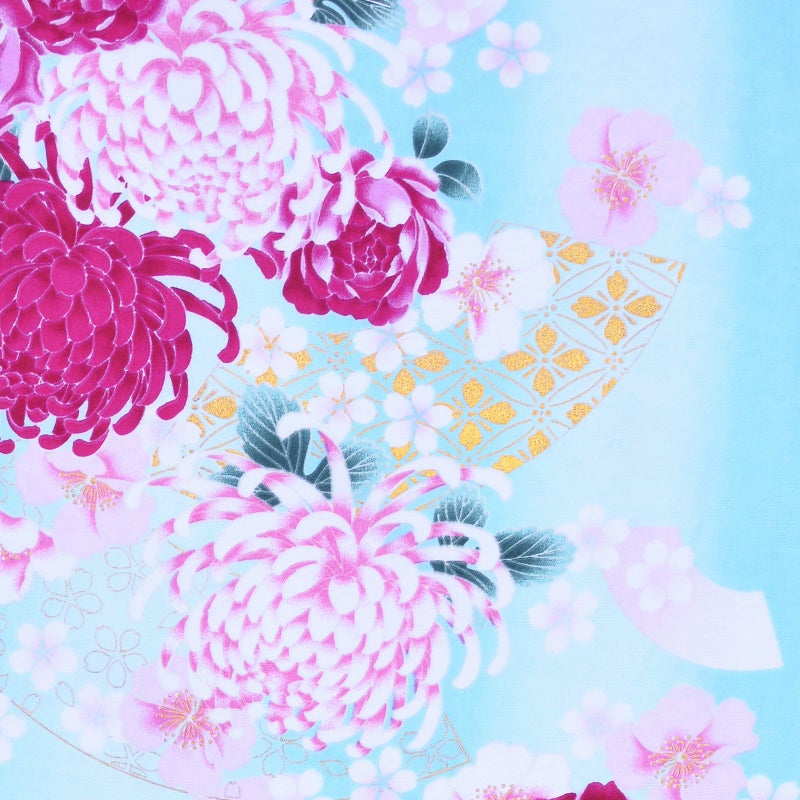 6. 【Prices down2】袷着物 単品 「水色ぼかし 菊・薔薇・桜」 フリーサイズ 着物 小紋 洗える着物 お仕立て上がり 普段着きもの カジュアル着物 レディース ポリエステル 【メール便不可】ss2603kck25