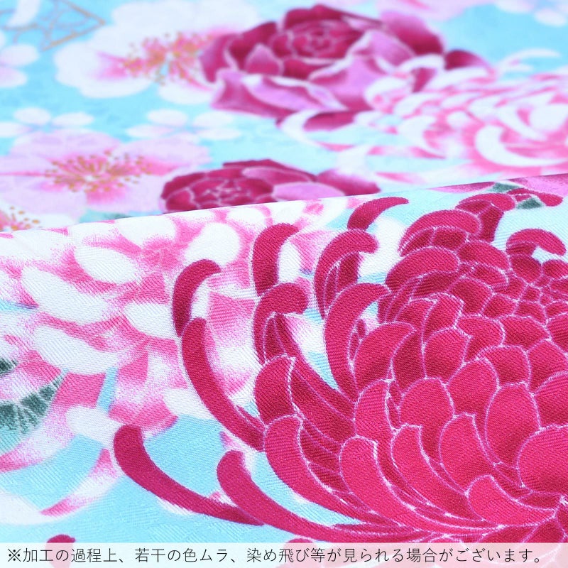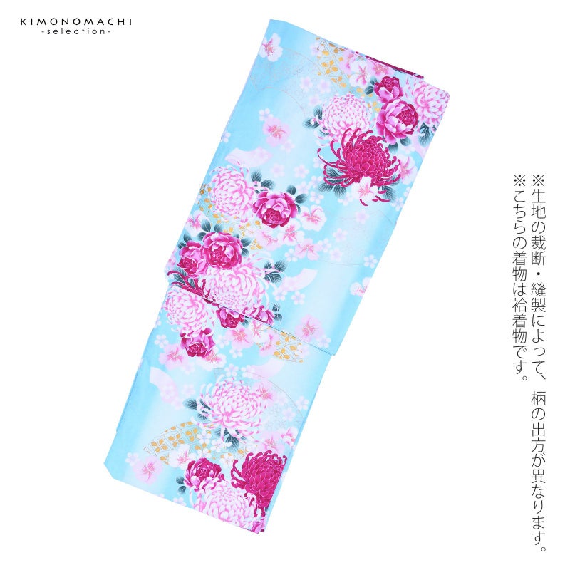 3. 【Prices down2】袷着物 単品 「水色ぼかし 菊・薔薇・桜」 フリーサイズ 着物 小紋 洗える着物 お仕立て上がり 普段着きもの カジュアル着物 レディース ポリエステル 【メール便不可】ss2603kck25