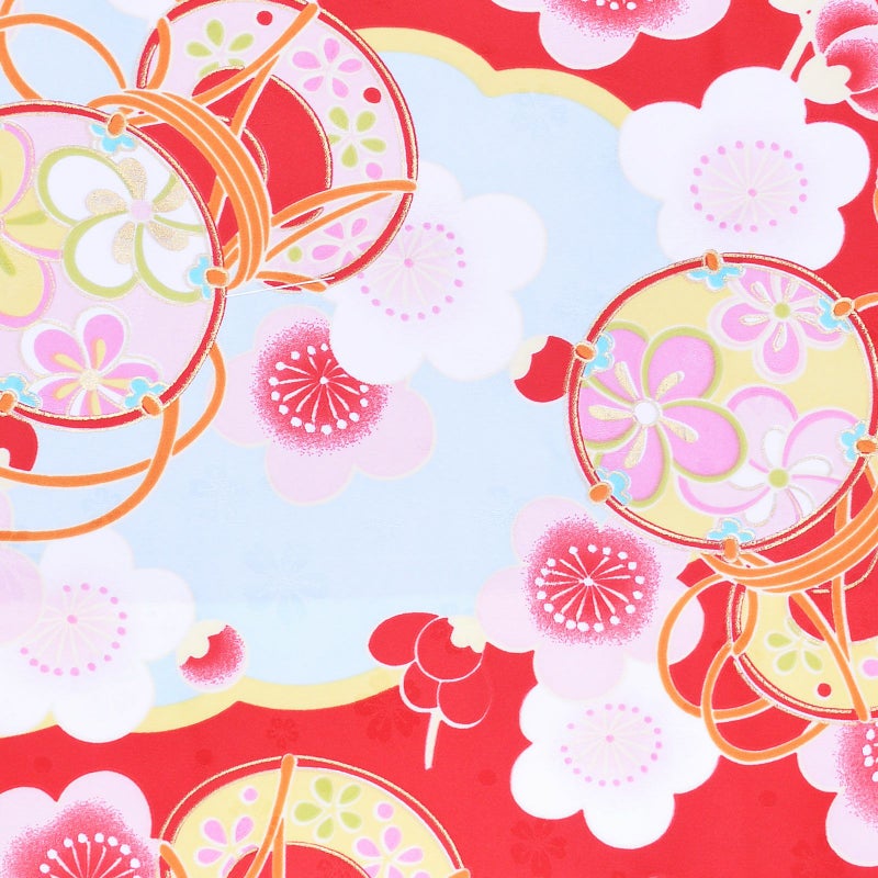6. 【Prices down3】袷着物 単品 「赤地 梅・鼓・雲取り」 フリーサイズ 着物 小紋 洗える着物 お仕立て上がり 普段着きもの カジュアル着物 レディース ポリエステル 【メール便不可】kc★45%OFF