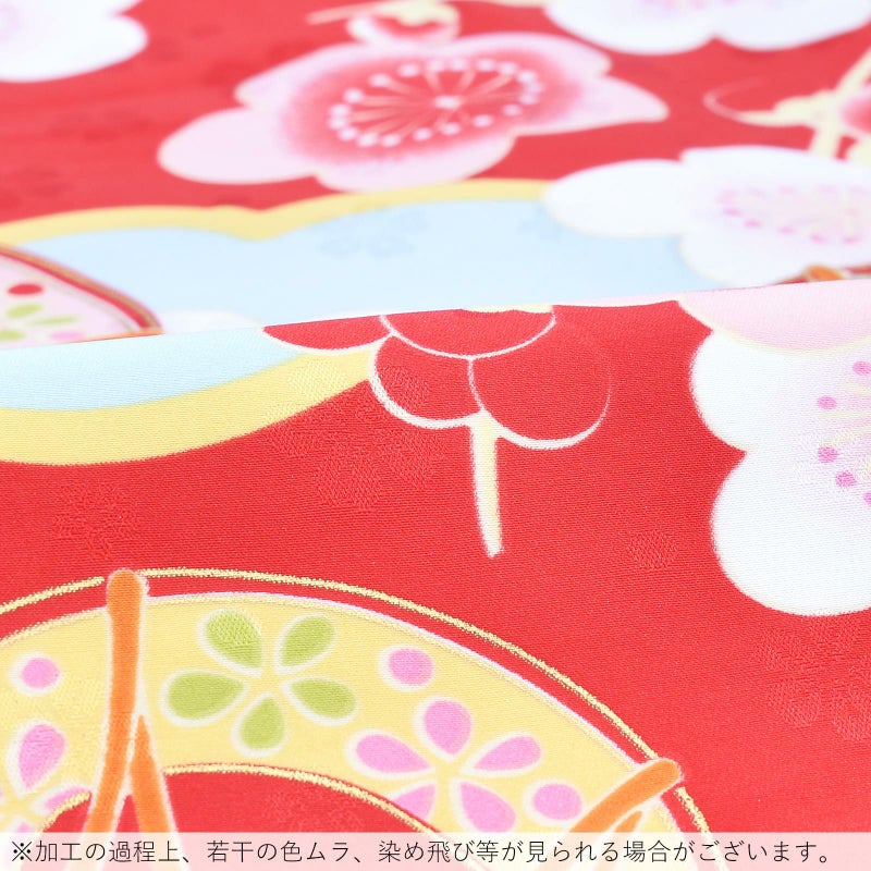 3. 【Prices down3】袷着物 単品 「赤地 梅・鼓・雲取り」 フリーサイズ 着物 小紋 洗える着物 お仕立て上がり 普段着きもの カジュアル着物 レディース ポリエステル 【メール便不可】kc★45%OFF