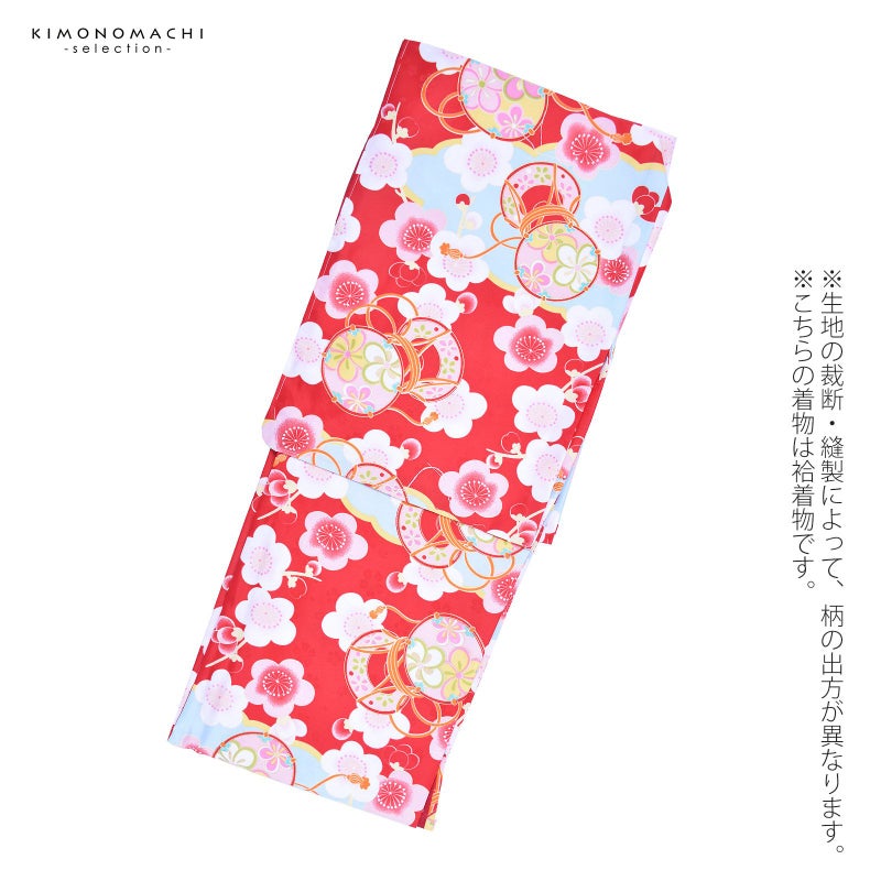 普段のお洒落着に お仕立て上がり洗える着物単品 【Prices down3】袷着物 単品 「赤地 梅・鼓・雲取り」 フリーサイズ 着物 小紋 洗える着物 お仕立て上がり 普段着きもの カジュアル着物 レディース ポリエステル 【メール便不可】kc★45%OFF