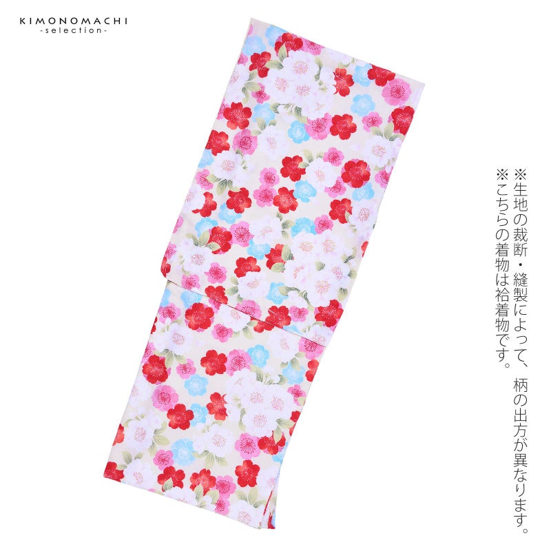 普段のお洒落着に お仕立て上がり洗える着物単品 【Prices down3】袷着物 単品 「クリーム ピンク、赤、水色 、桃色の桜」 フリーサイズ 着物 小紋 洗える着物 お仕立て上がり 普段着きもの カジュアル着物 レディース ポリエステル 【メール便不可】ss2506kck10