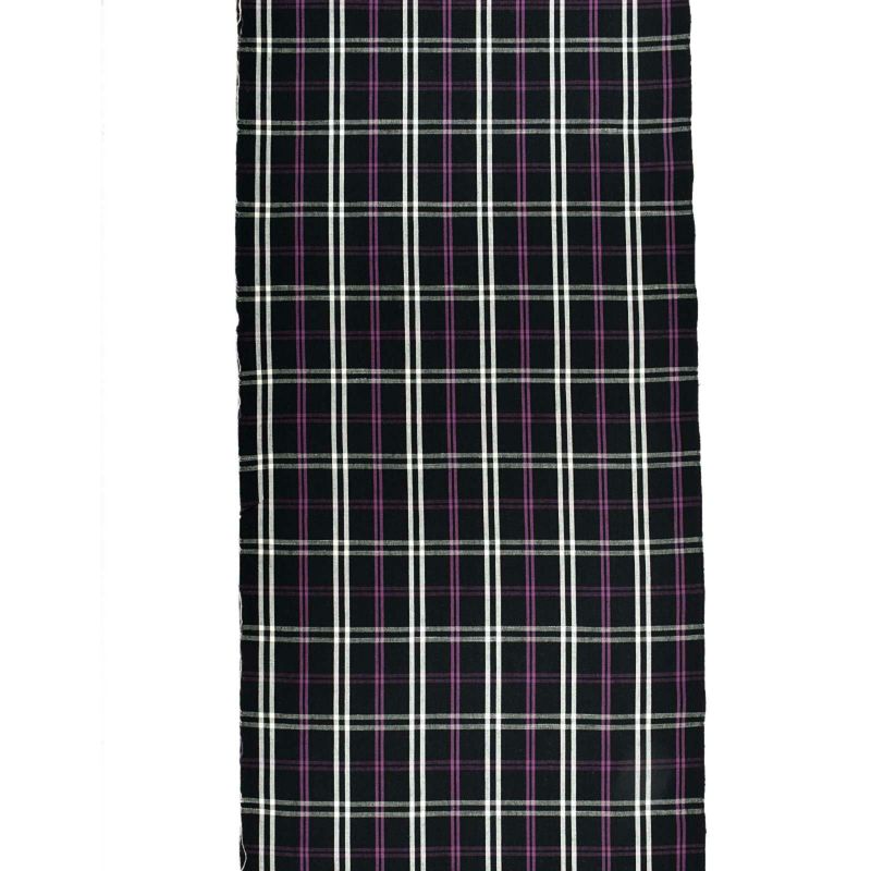 黒を基調に細い紫、白、横段に淡い色を重ねたチェック。紫蘇と名付けられたキリッとした雰囲気の格子です。