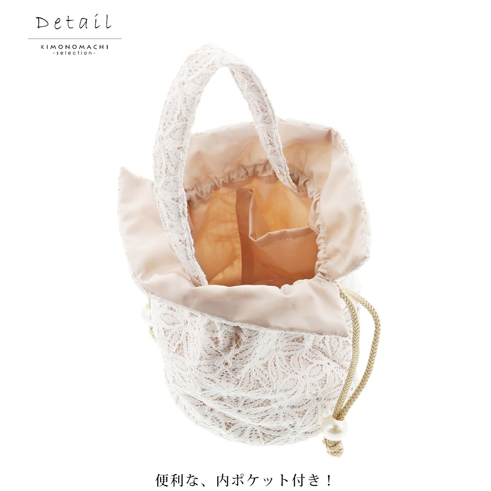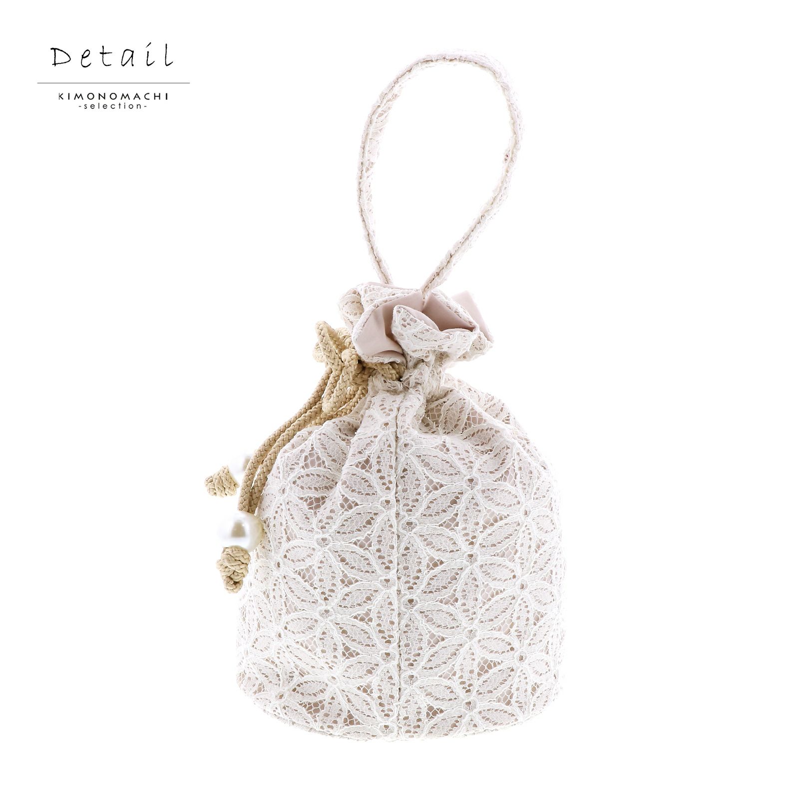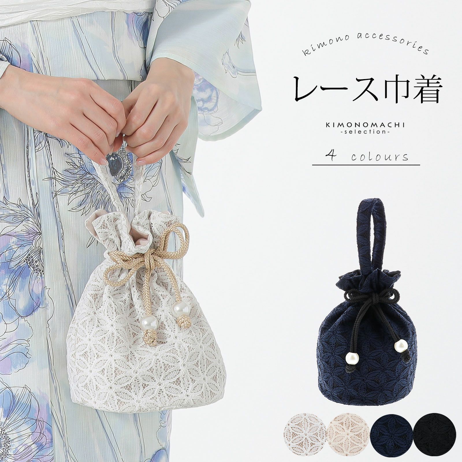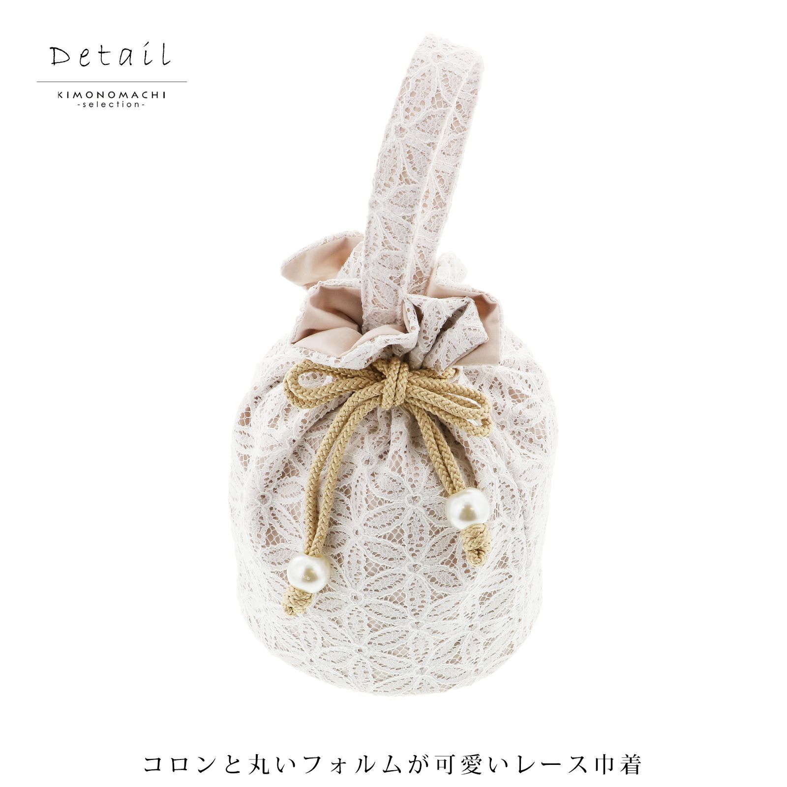 コロンと丸いフォルムが可愛い、レース巾着です。小紋などの普段のお着物で、ちょっとお出かけという時に。卒業式の袴に合わせても。