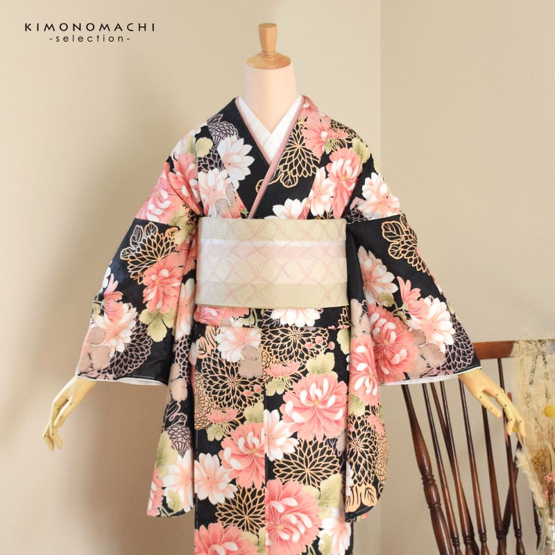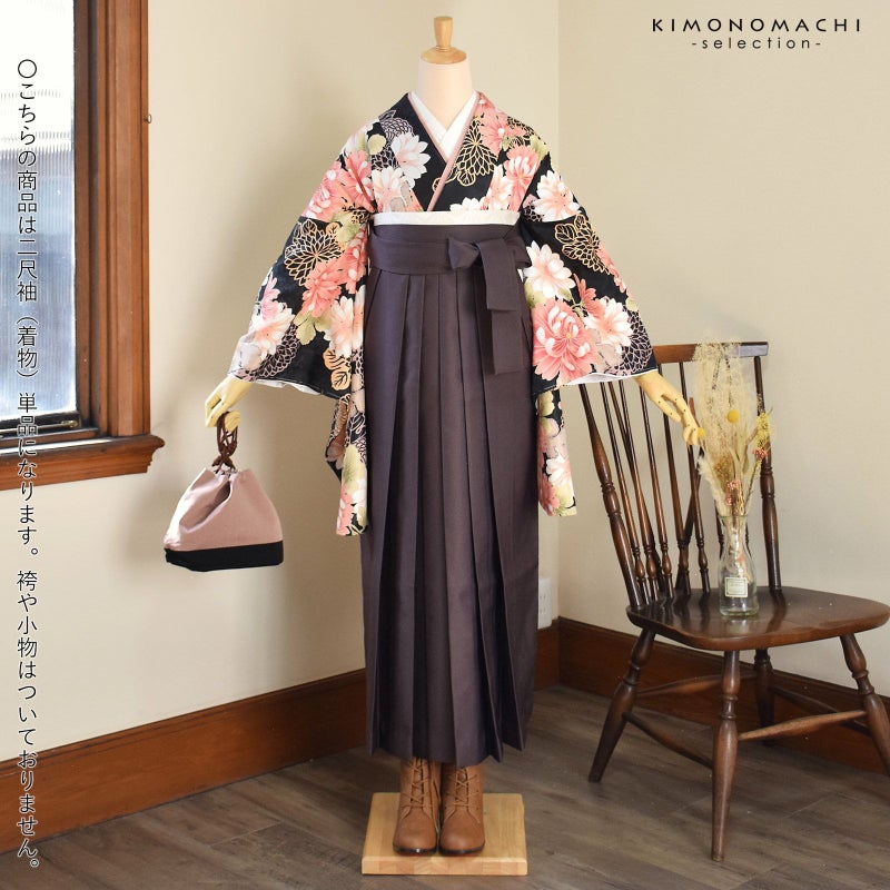 (卒業式応援75%SALE 3/5迄)二尺袖着物 単品 「黒地 菊」 お仕立て上がり レディース 洗える着物 二尺袖 着物 袴に合わせて 卒業式 謝恩会に 通常丈 長着 カジュアル着物 【メール便不可】<H>