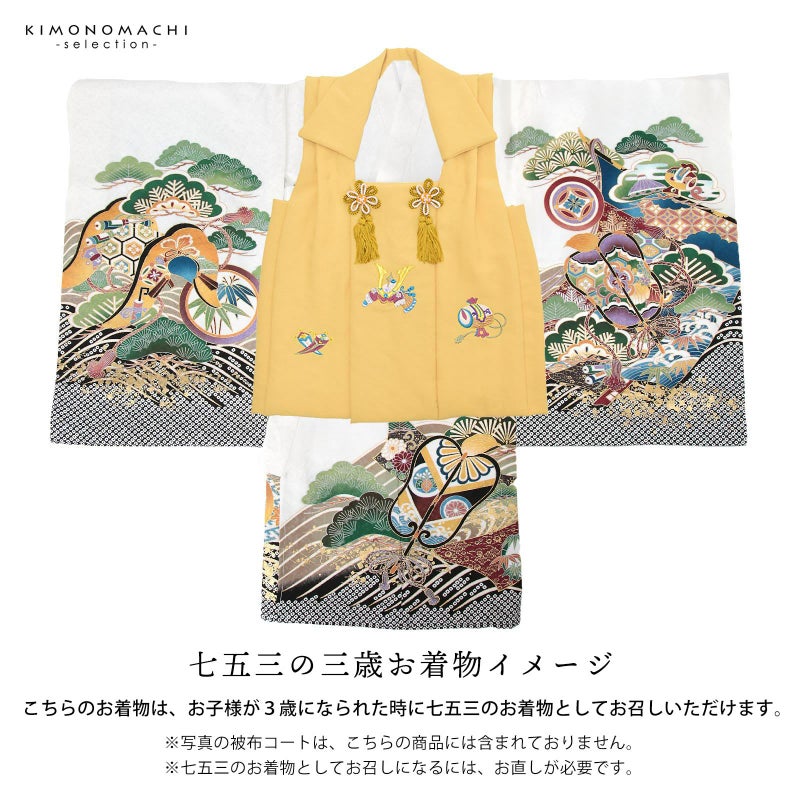 また、お子様が3歳になられた時に七五三のお着物としてもお召しいただけます。お直しが必要になりますので、別途お申込みください。
