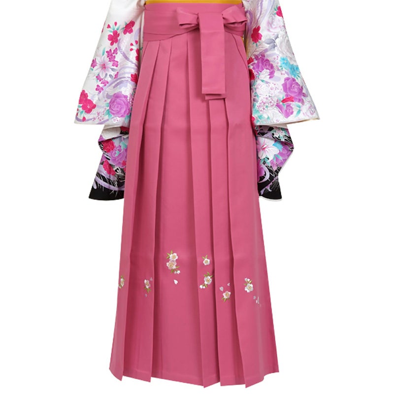 卒業式の装いにぴったりの袴単品です。中仕切りのない行灯袴(あんどんはかま)ですので、丈の長い着物でも合わせていただけます。洋服のスカートと同じようにお召しいただけます。振袖や二尺袖着物に合わせやすい華やかな袴です。生地はお手入れしやすいポリエステル素材です。草履はもちろん、ブーツを合わせたモダンな着こなしもいいですね。
