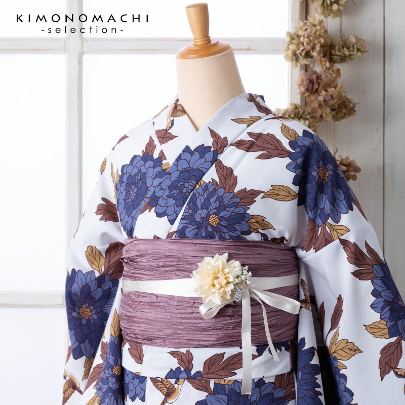 お花のコサージュとリボンのエレガントな帯飾りです。浴衣や着物のコーデを手軽にランクアップできます。