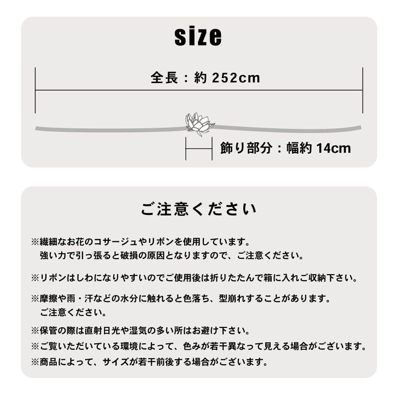 ※繊細なお花のコサージュやリボンを使用しています。強い力で引っ張ると破損の原因となりますので、ご注意ください。