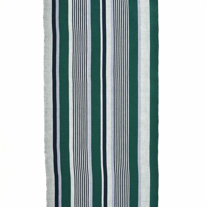 深緑色に灰色の縞、紺の細縞、挿し色として浅い薄紫色が配置されたデザイン。落ち着いた格好いい配色のストライプです。