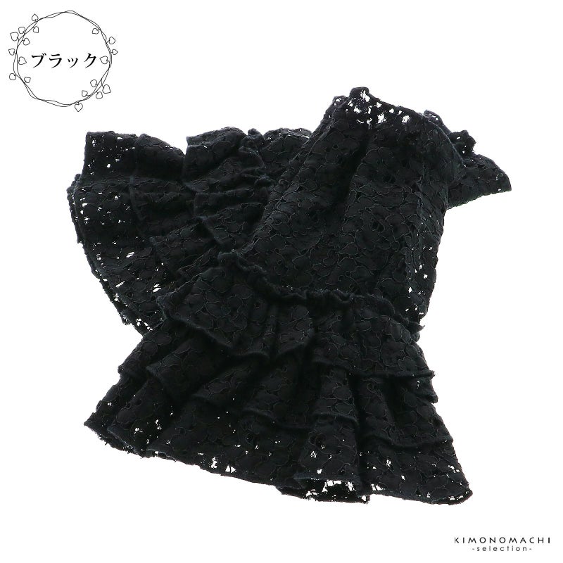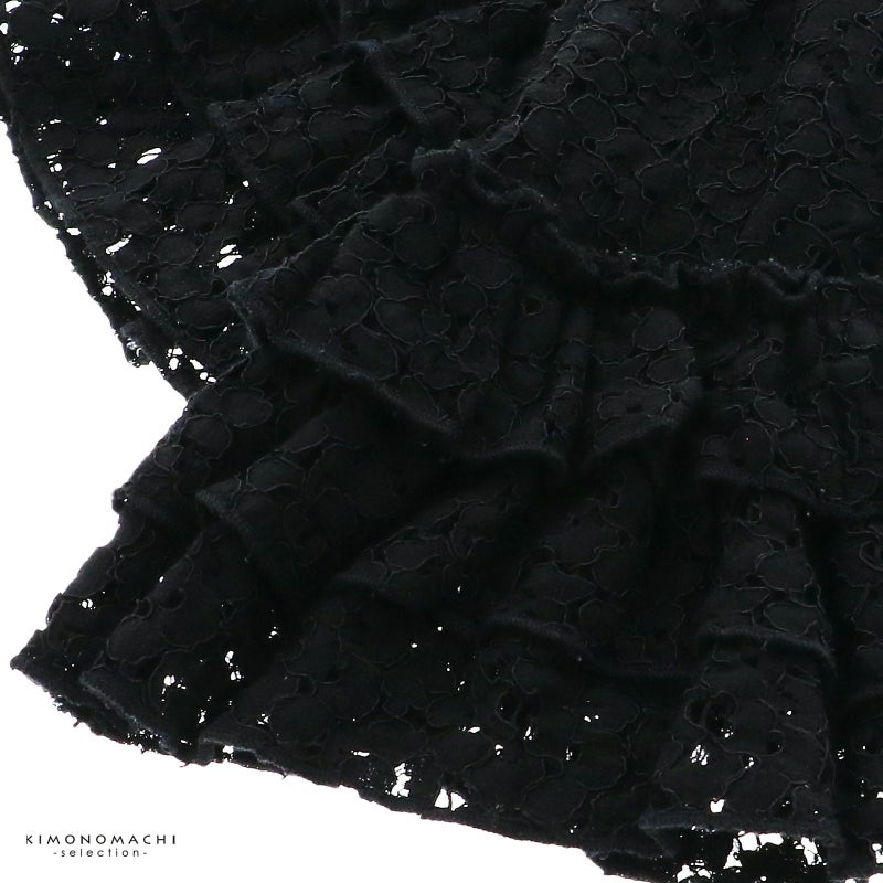 ブラック…黒の花模様のレース。フリルが三段重なっています。