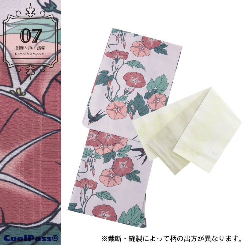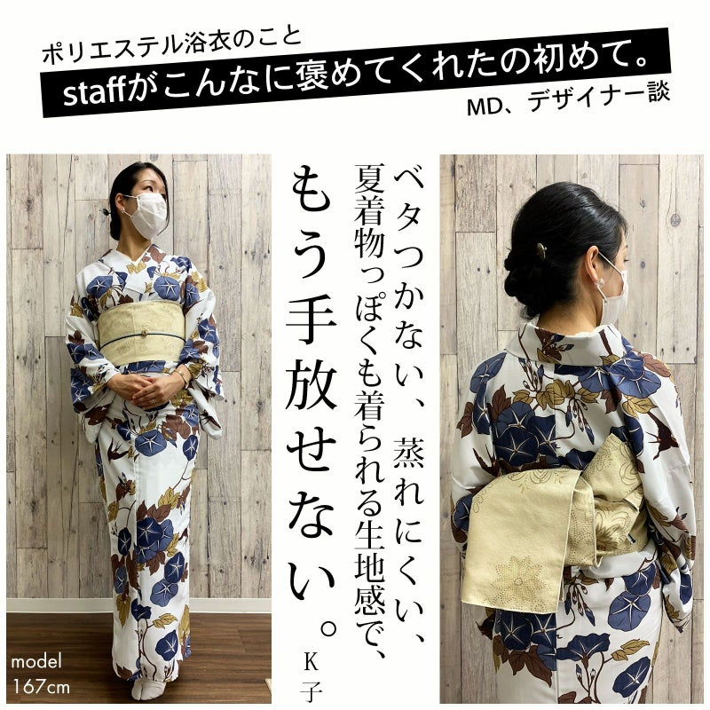 吸水速乾、CoolPass素材使用のポリエステル浴衣、レディース浴衣と半幅帯の2点セットです。