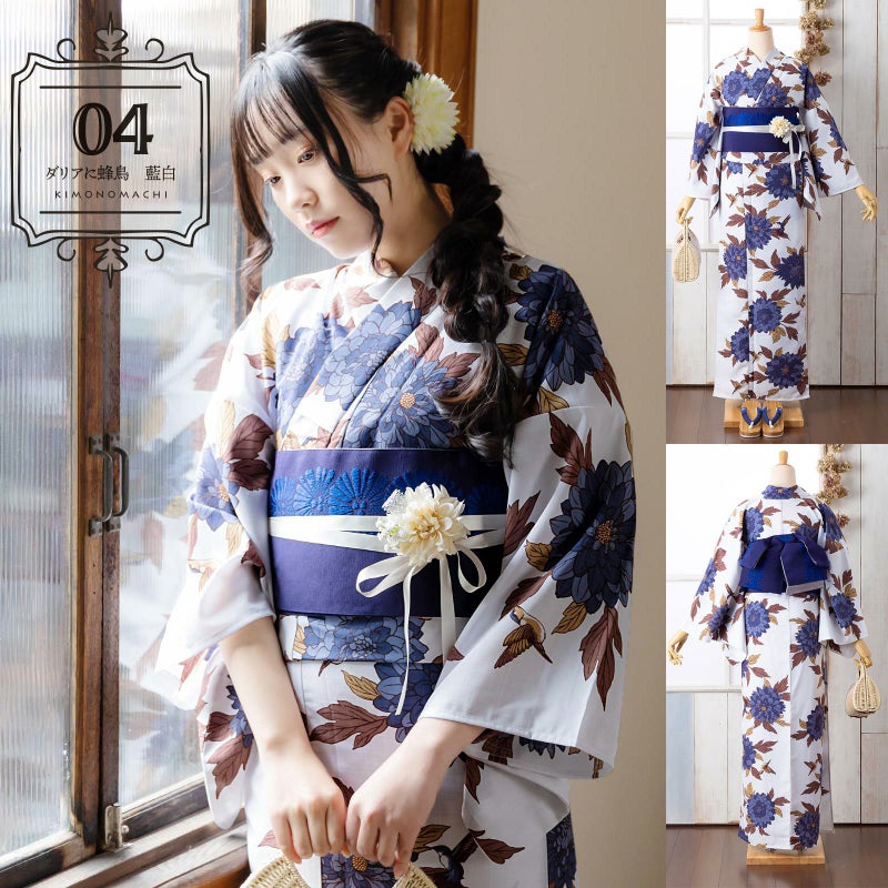KIMONOMACHI オリジナル 吸水速乾ポリエステル浴衣と小袋帯の2点セット 浴衣 セット レディース 吸水速乾 CoolPass ポリエステル浴衣 浴衣と帯の2点セット「向日葵に雀と四十雀、夏椿に鵯、朝顔に燕、ダリアに蜂鳥」Fサイズ LLサイズ 大人 女性浴衣 半幅帯 小袋帯 個性的 花火大会 夏祭り 女性ゆかた 夏着物 単衣着物 オリジナル KIMONOMACHI 【メール便不可】ss2512ykl10