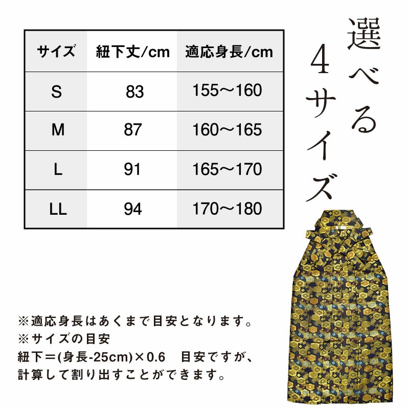 4. 袴 金襴袴 男性袴 馬乗り袴 単品「黒色系段ぼかし亀甲文」4サイズ S/M/L/LL 身長150cm~180cmまで フォーマル 成人式 卒業式 結婚式 男性 メンズ 晴れ着【メール便不可】