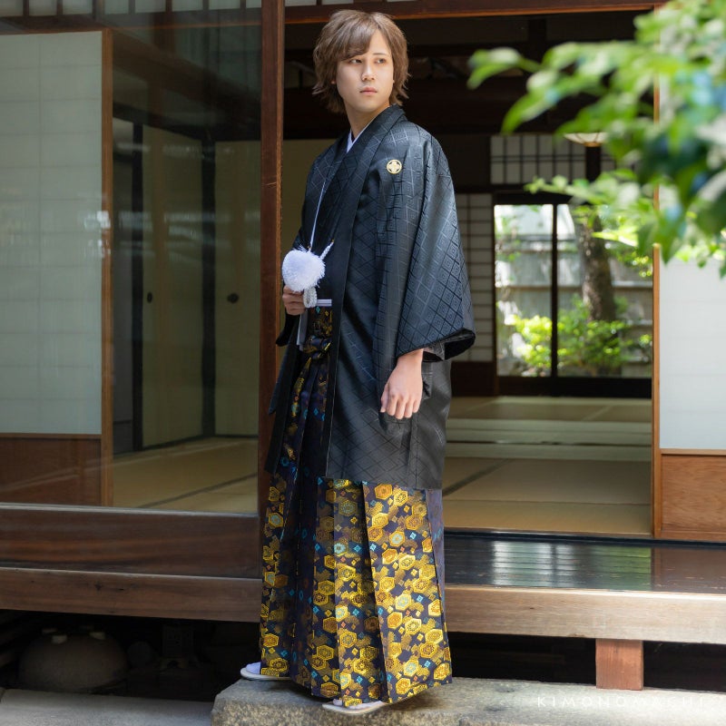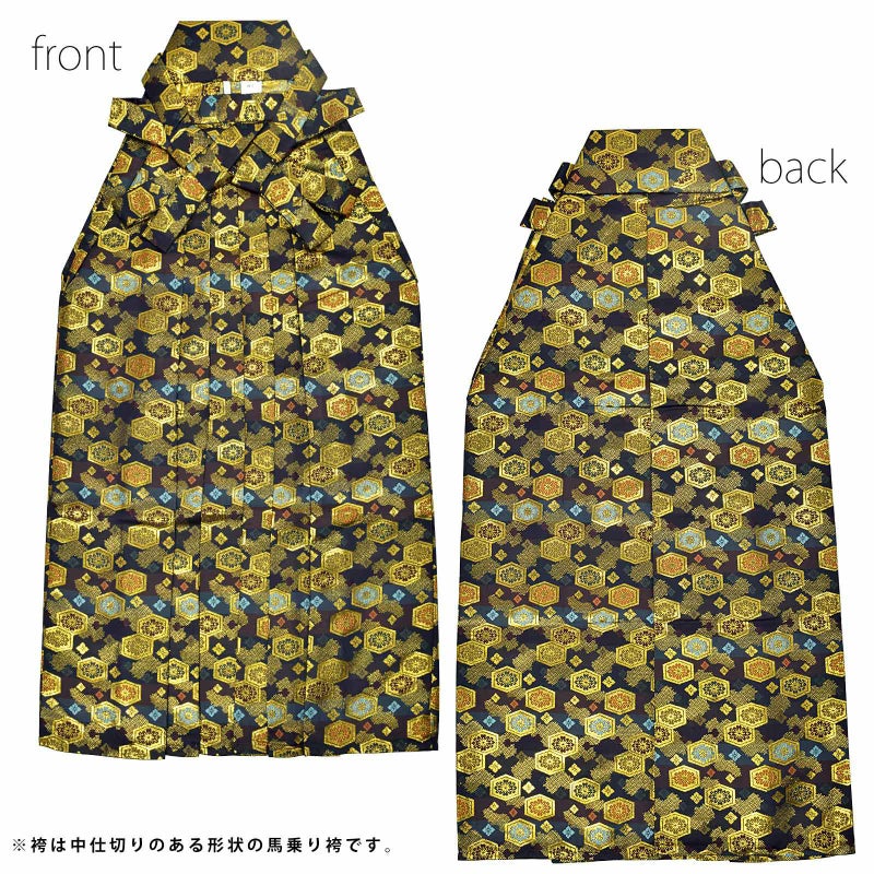 3. 袴 金襴袴 男性袴 馬乗り袴 単品「黒色系段ぼかし亀甲文」4サイズ S/M/L/LL 身長150cm~180cmまで フォーマル 成人式 卒業式 結婚式 男性 メンズ 晴れ着【メール便不可】