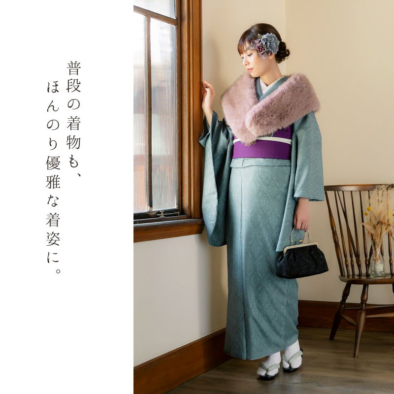 袴と合わせて、卒業式・謝恩会にぴったりの袴スタイルに。 普段着着物として、長めの袖でアンティーク風な着こなしに。