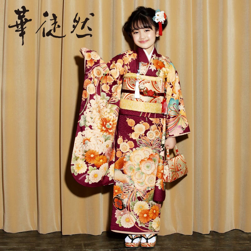 6. 七五三 着物 7歳 ブランド 四つ身着物 単品 華徒然 「赤紫色 四季花くす玉」 女の子 7才 女児用 子供着物 七才のお祝い着向け 【メール便不可】kk★10%OFF
