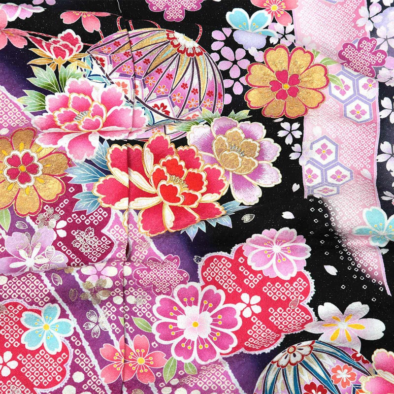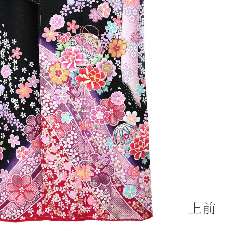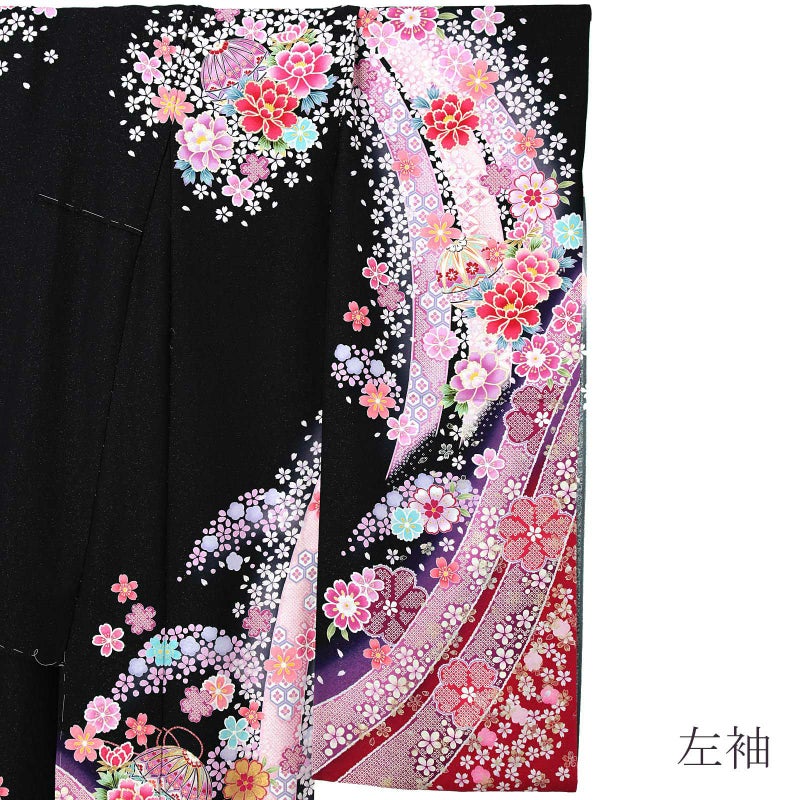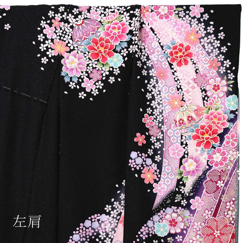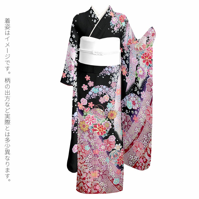 3. (卒業式応援Point10倍 3/5迄)未仕立て 振袖 単品 「黒地 熨斗に桜、牡丹に手毬」 仮絵羽 振り袖 正絹 着物 レディース 成人式 結婚式 結納 パーティー 晴れ着 【メール便不可】