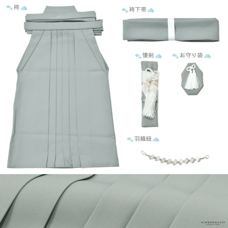 【商品内容】長襦袢・着物・羽織・袴・袴下帯・懐剣・お守り・羽織紐・付け衿・腰ひも2本(プレゼント)の計10点