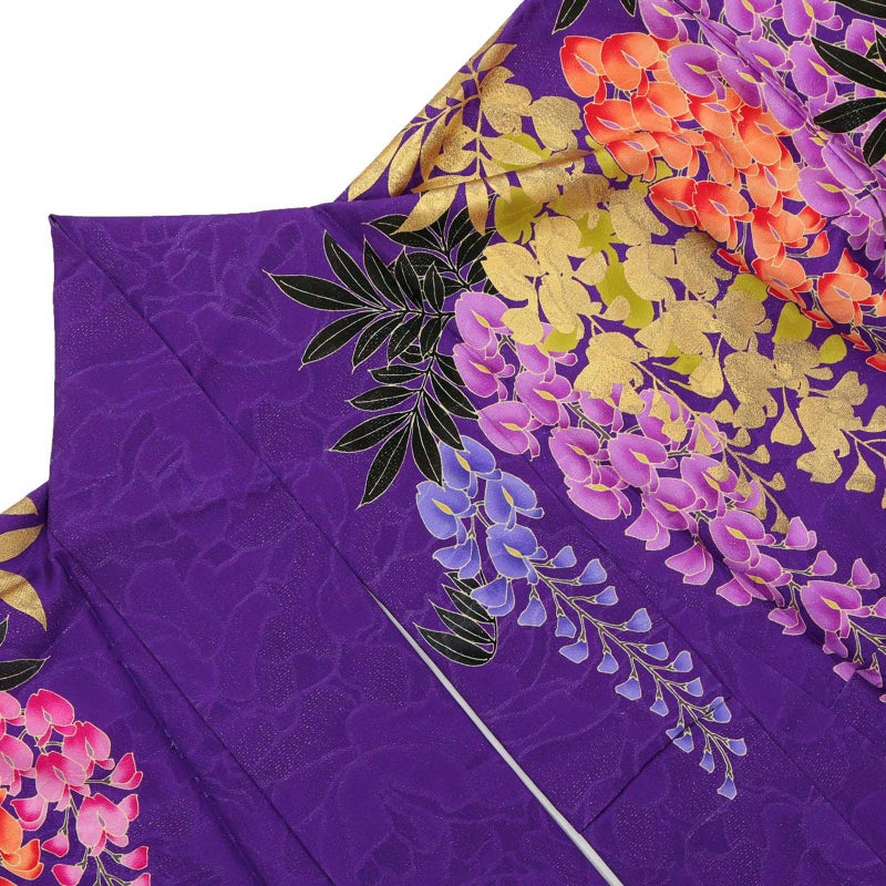 【商品内容】振袖(仮絵羽・未仕立て)、袋帯(未仕立て)、長襦袢(未仕立て)、ショール、刺繍半衿、肌着、帯枕、帯前板、帯後板、衿芯、伊達締め2本、コーリンベルト、三重仮紐、腰紐6本、足袋、着物ハンガー、振袖お仕立て、帯お仕立て、襦袢お仕立て、半衿縫い付け、胴裏正絹、長襦袢正絹の計22点セット