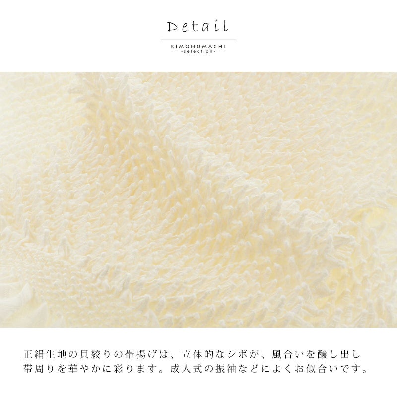 振袖用 帯揚げ 正絹 「貝絞り 象牙色」 総絞り 古典 豪華 成人式 結婚式 振袖小物 帯あげ おびあげ 帯揚 【メール便対応可】