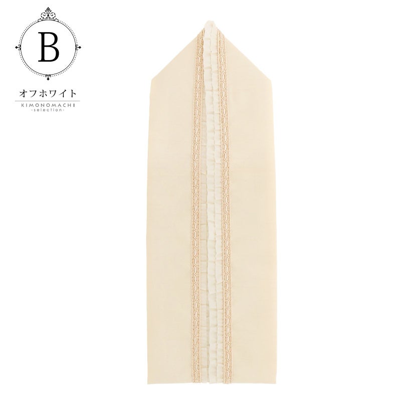 B.オフホワイト…淡いベージュのシャンタン風の重ね衿、縁にベージュのブレードレース、オフホワイトのダブルフリル。