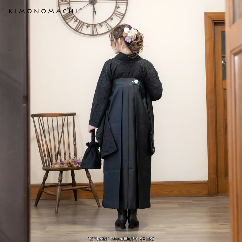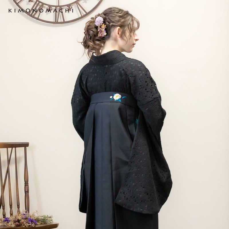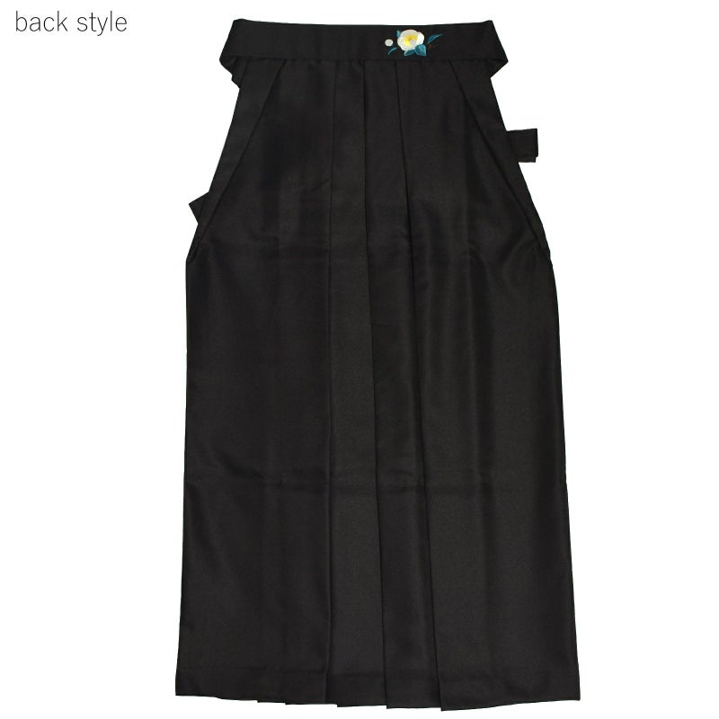 袴:黒地、腰の部分に白の椿の刺繍。