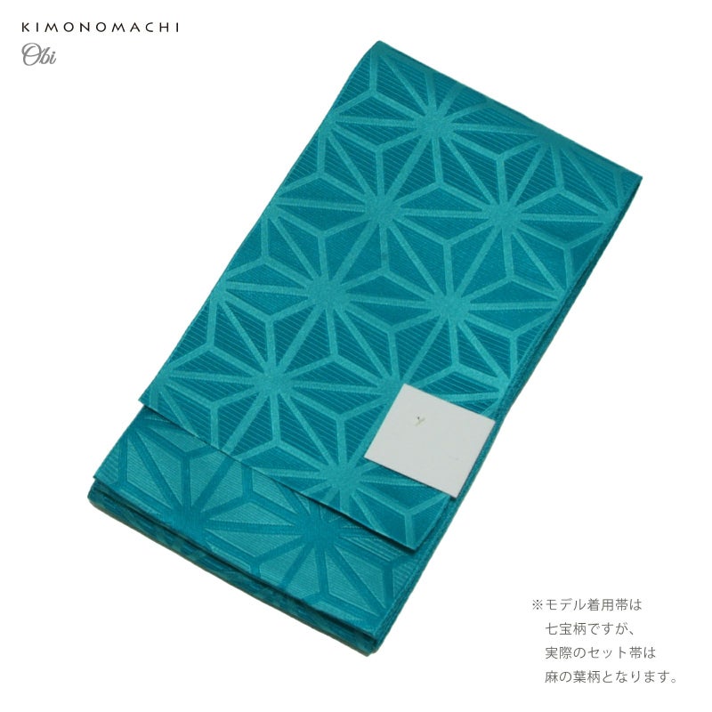 袴下帯:鮮やかな青緑色の、コバルトブルーの帯です。