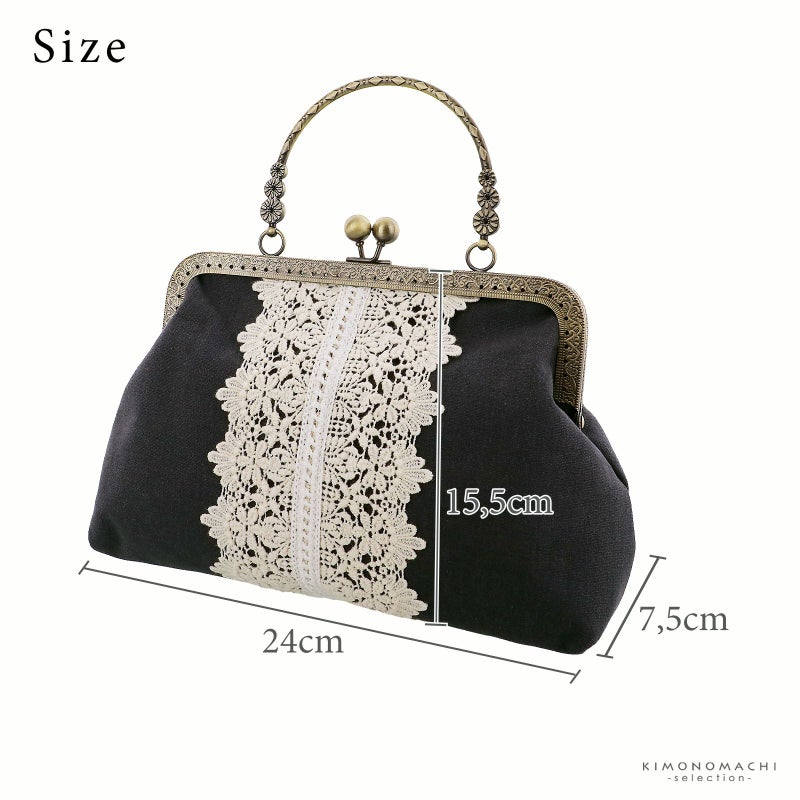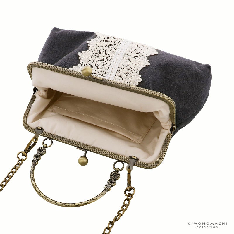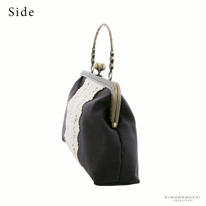 (卒業式応援75%SALE 2/19迄)レース がま口バッグ「チャコールグレー」バッグ アンティーク調 カジュアル パーティー お洒落 普段使い 成人式 振袖 着物 和装 和服 卒業式 謝恩会 袴 洋服 和装バッグ カバン かばん 鞄【メール便不可】
