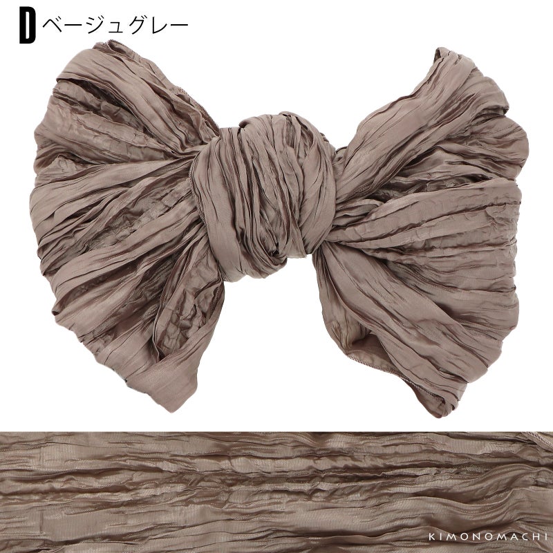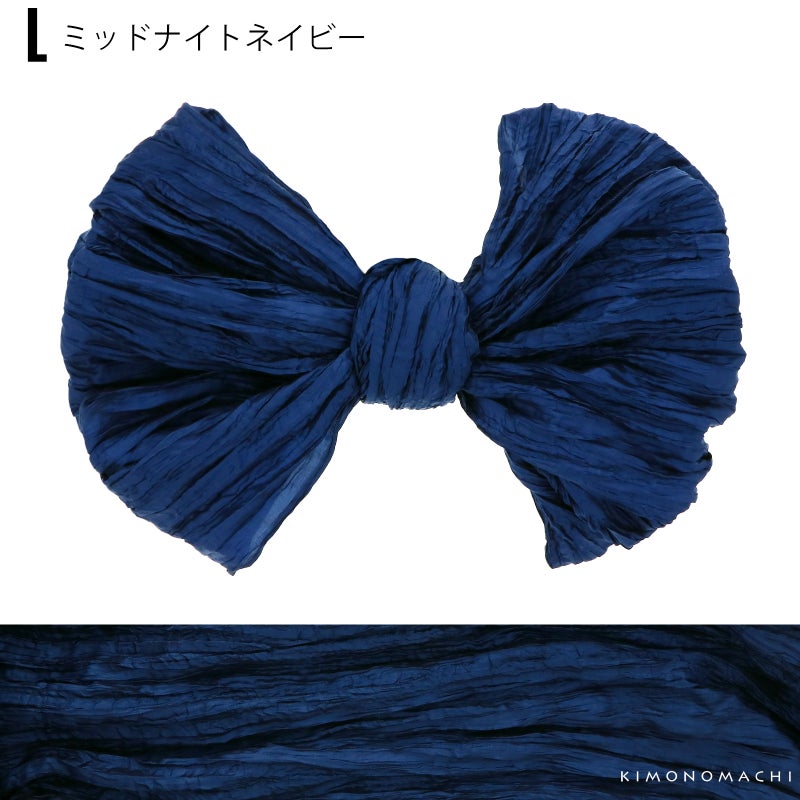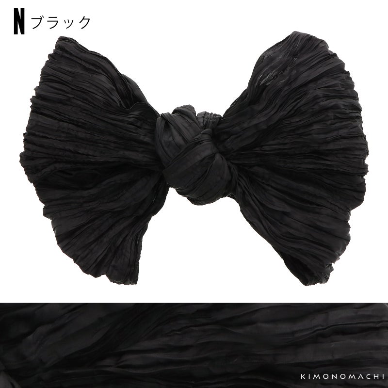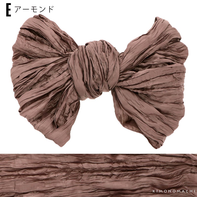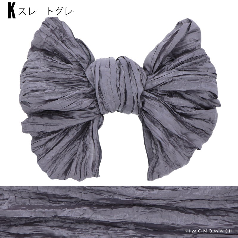 しわ加工の施された、シャリ感のあるやわらかい生地です。柔らかくて幅が広いので、ボリューム感のあるリボン結びが簡単にできます。帯に重ねて結んで、飾り帯にしてもかわいい!
