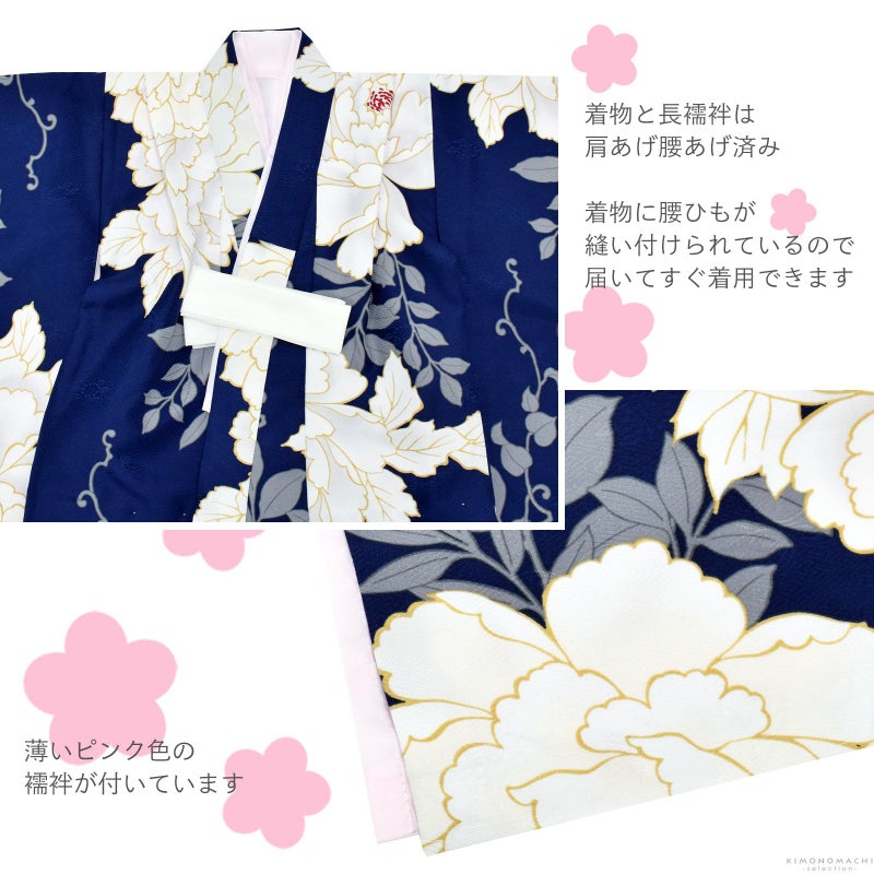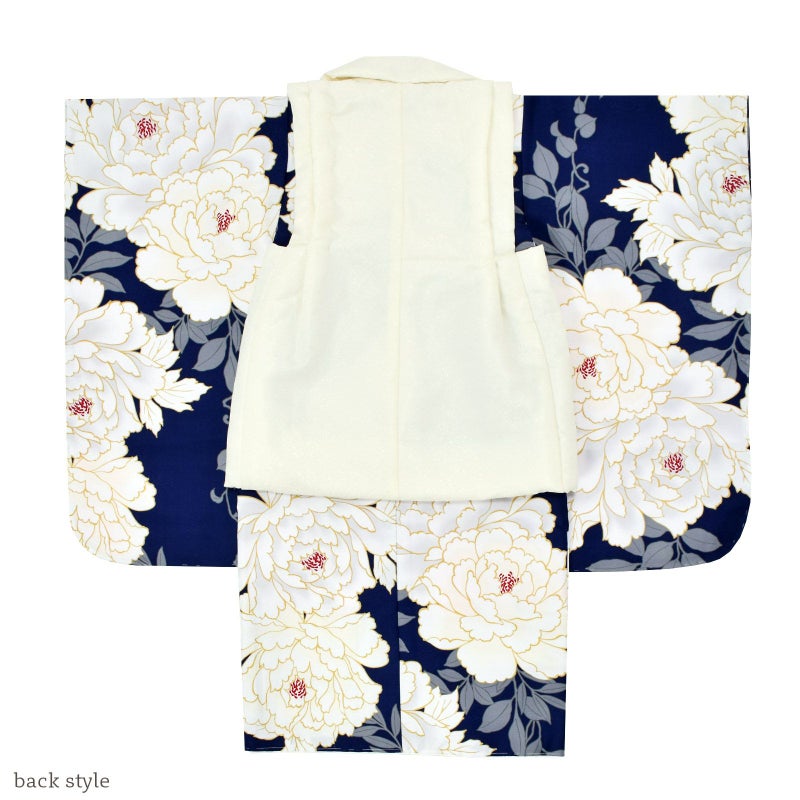 ※着物はすでに身上げ、肩上げが施されています。3歳のお祝いをするお子様の平均身長に合わせて、身長90~100cmぐらいのお子様がぴったりと着ていただけるサイズになっています。もしそれでは大きい、もしくは小さいようでしたら身上げ、肩上げを一度解いていただいて、お子様に合わせて、再度縫い上げてください。