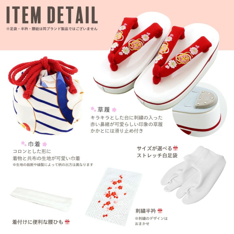 【商品内容】長襦袢・着物・重ね衿(縫い付け済)・被布コート・巾着・草履・刺繍半衿(プレゼント)・足袋(プレゼント)・腰ひも1本(プレゼント)の9点セット