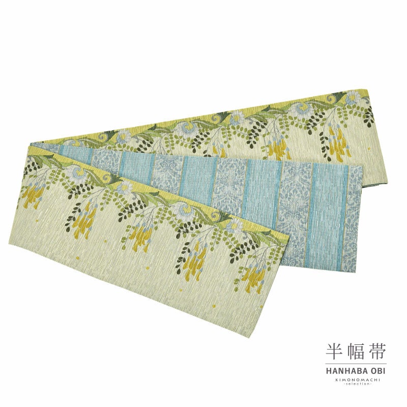 半幅帯 単品 お仕立て上がり 帯 ブランド 召しませ華「Vine flower イエロー」日本製 長尺 半巾帯 リバーシブル レディース 女性用 カジュアル 着物 <H>【メール便不可】ss2512oyk10