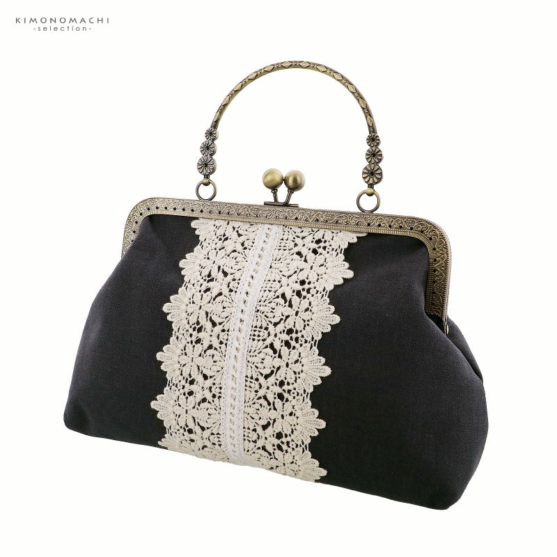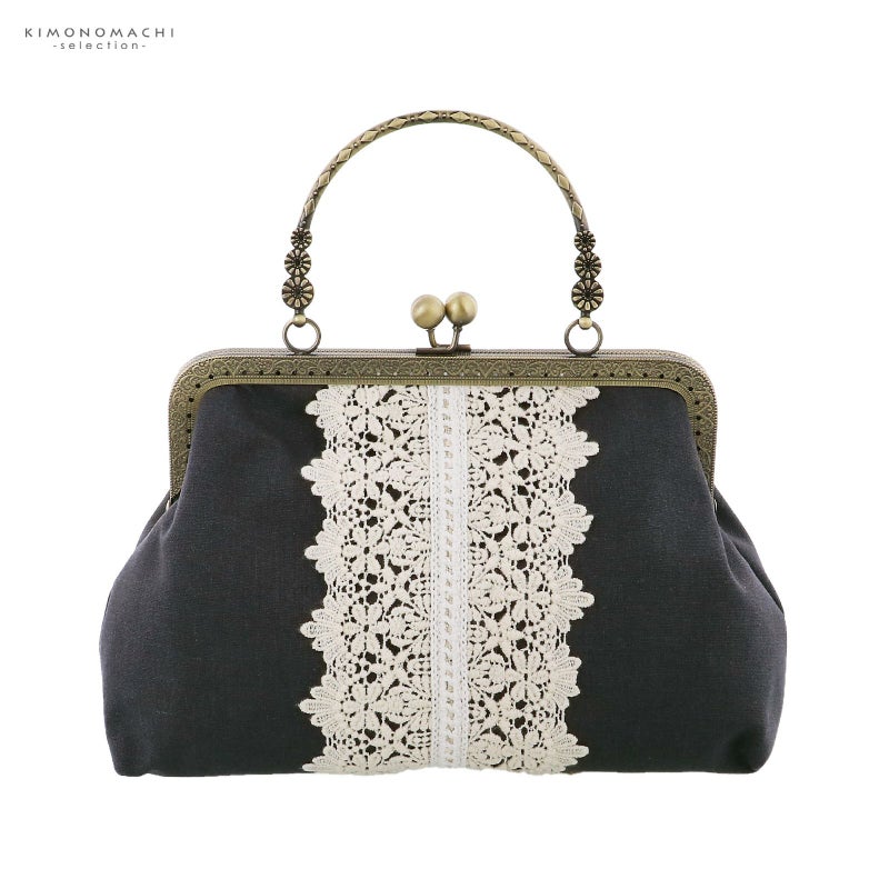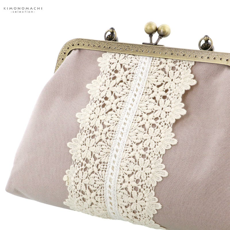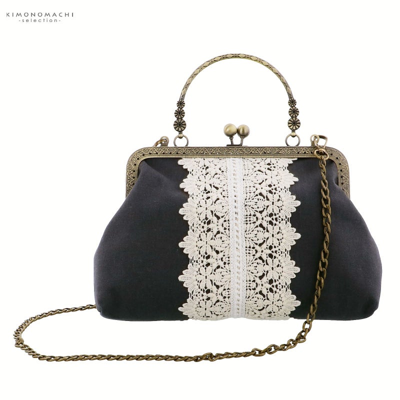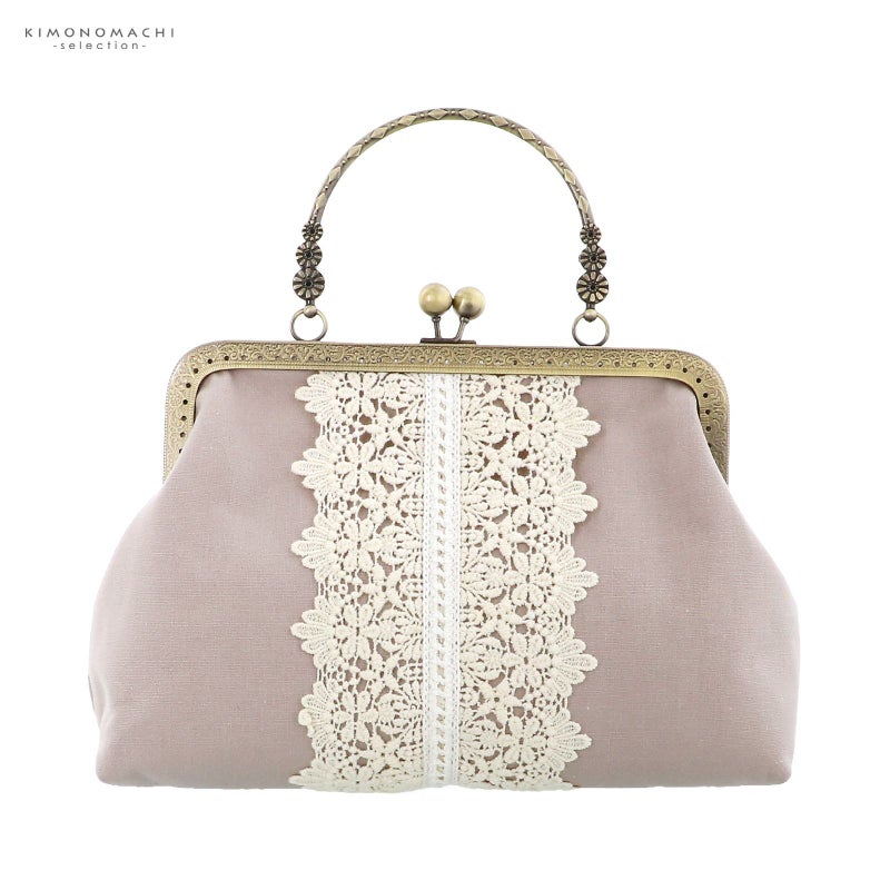 (卒業式応援75%SALE 2/19迄)レース がま口バッグ「チャコールグレー・ベージュグレー」バッグ アンティーク調 カジュアル パーティー お洒落 普段使い 成人式 振袖 着物 和装 和服 卒業式 謝恩会 袴 洋服 和装バッグ カバン かばん 鞄【メール便不可】