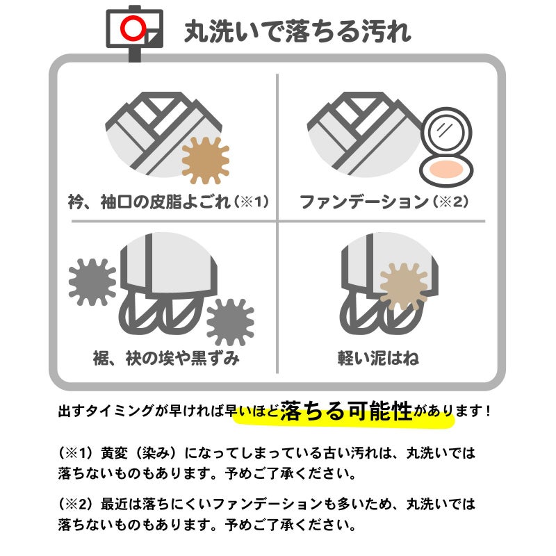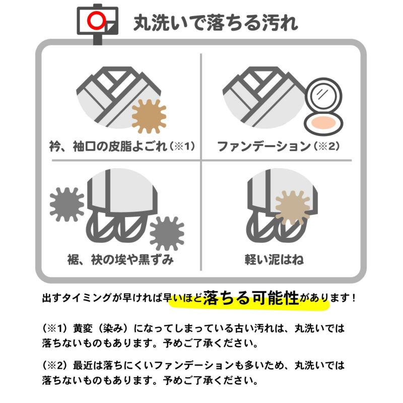 ※染みになっているよごれは、下洗いと京洗いだけでは落ちません。染みのものはそのまま残ります。ご了承ください。