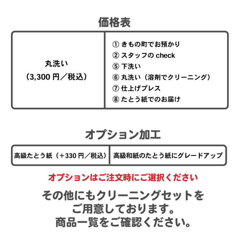 【きもの丸洗い クリーニング 価格表】
