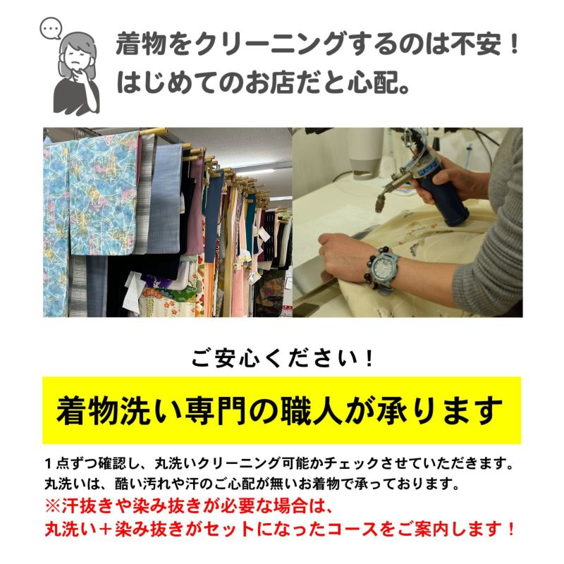 丸洗いは、酷い汚れや汗のご心配が無いお着物で承っております。