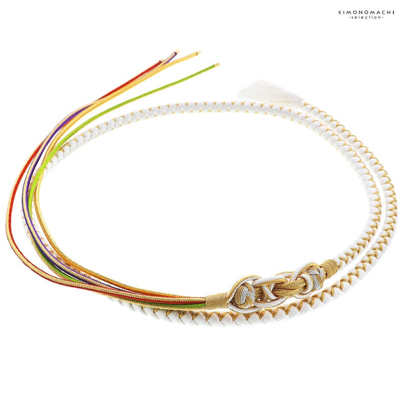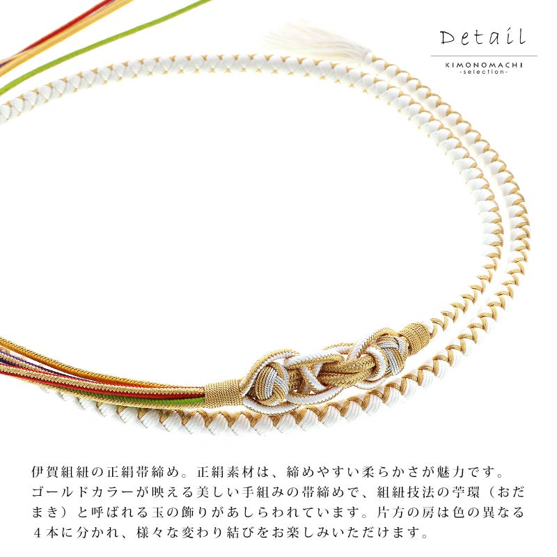 帯締め 伊賀組紐 振袖用 正絹 「白×金」 日本製 伝統的工芸品 伊賀くみひも 組みひも 帯〆 古典 豪華 おしゃれ お洒落 成人式 結婚式 着物 振袖小物 【メール便不可】
