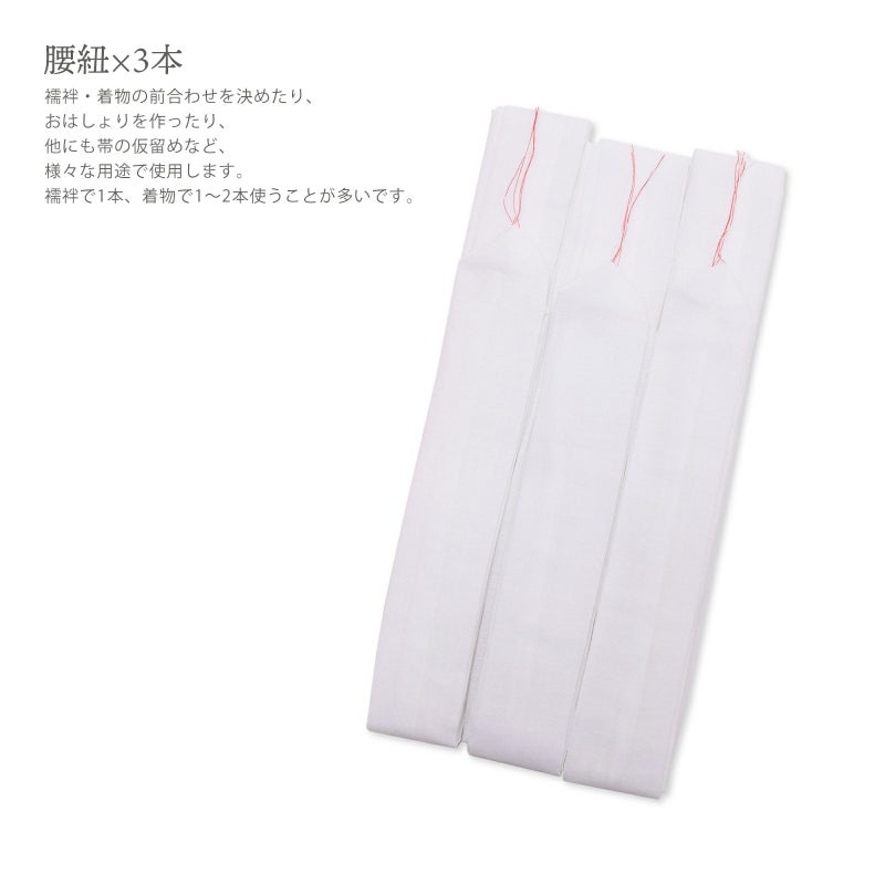 【商品内容】伊達締めx2本、腰紐x3本、着付けベルト、衿芯、帯板、肌着スリップの9点セット。
