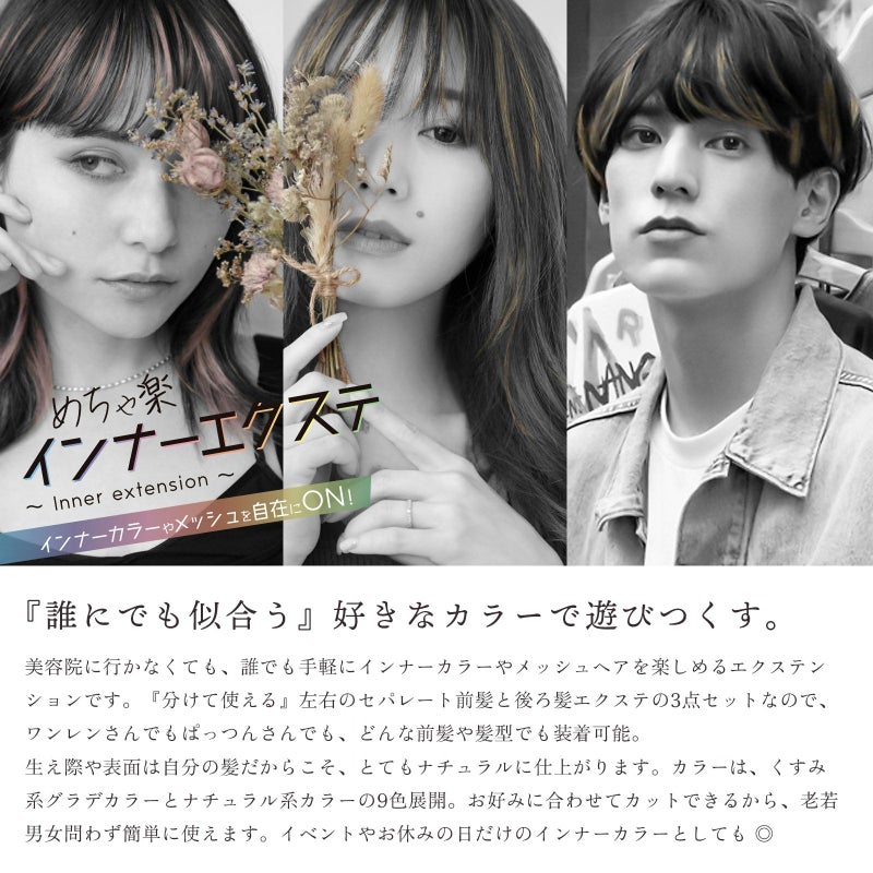 美容院に行かなくても、誰にでも手軽にインナーカラーやメッシュヘアを楽しめるエクステンションです。