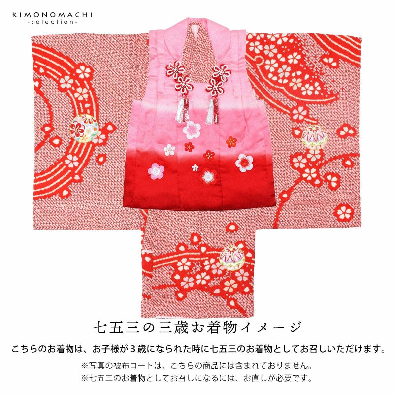 また、お子様が3歳になられた時に七五三のお着物としてもお召しいただけます。お直しが必要になりますので、別途お申込みください。