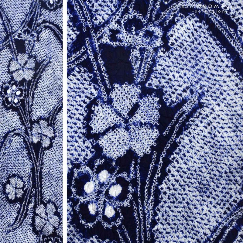 絞り浴衣反物「チャーミングなでしこ 紺」女性浴衣 レディース浴衣 絞り浴衣 綿浴衣 未仕立て【メール便不可】ss2403ykl10