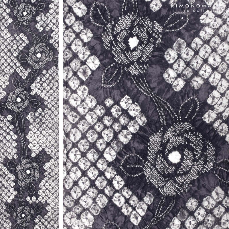 3. 絞り浴衣反物「ばら 黒グレー」女性浴衣 レディース浴衣 絞り浴衣 綿浴衣 未仕立て【メール便不可】ss2503ykl10