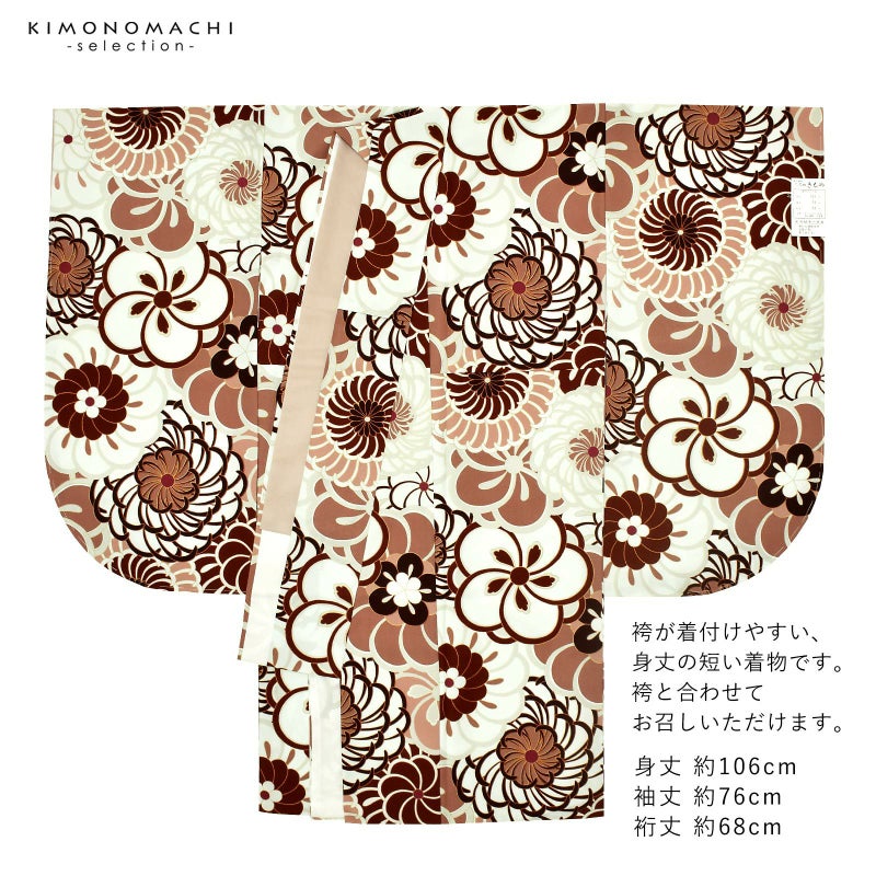 二尺袖着物 単品 百華小紋「ねじ花 アイスブラウン」日本製 お仕立て上がり レディース 洗える着物 二尺袖 着物 袴に合わせて 卒業式 謝恩会に<U>【メール便不可】