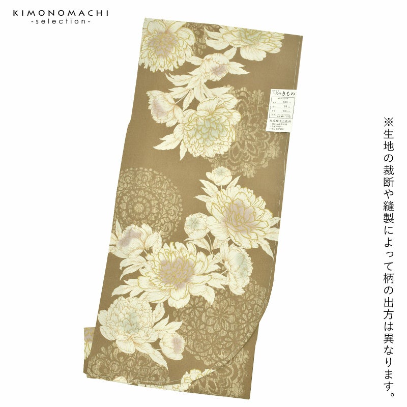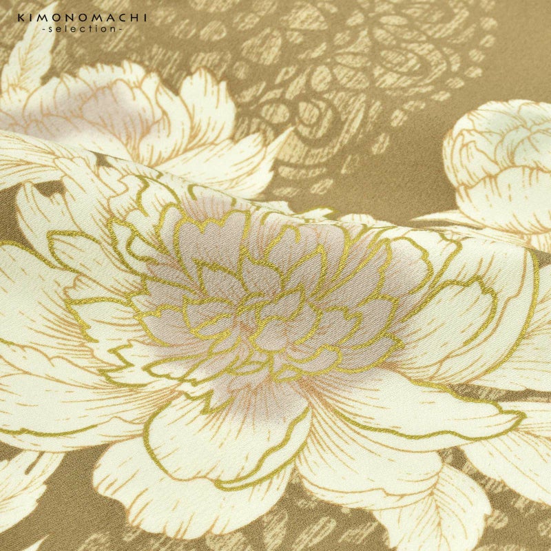 二尺袖着物 単品 百華小紋「牡丹 カーキベージュ」日本製 お仕立て上がり レディース 洗える着物 二尺袖 着物 袴に合わせて 卒業式 謝恩会に 取り寄せ品<U>