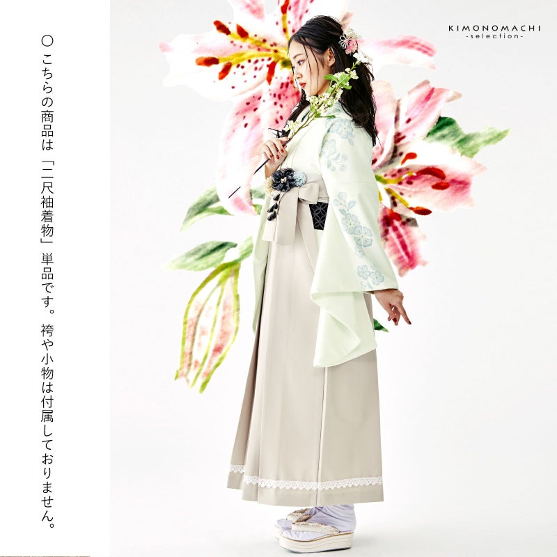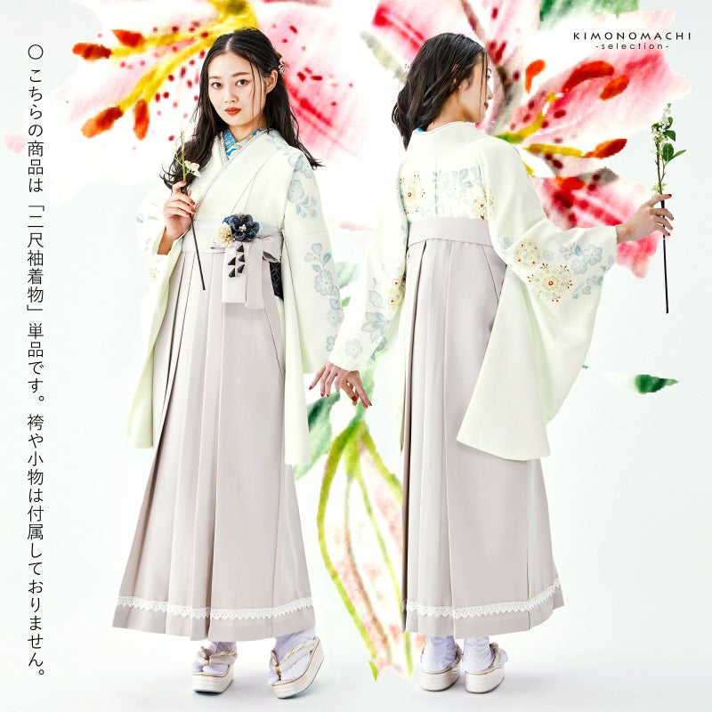 卒業式、謝恩会に 袴に合わせて華やかに 二尺袖着物 (卒業式応援SALE3/31迄)二尺袖着物 単品 絵羽「唐花 オフホワイト」日本製 お仕立て上がり レディース 洗える着物 二尺袖 着物 袴に合わせて 卒業式 謝恩会に 取り寄せ品<U>【メール便不可】