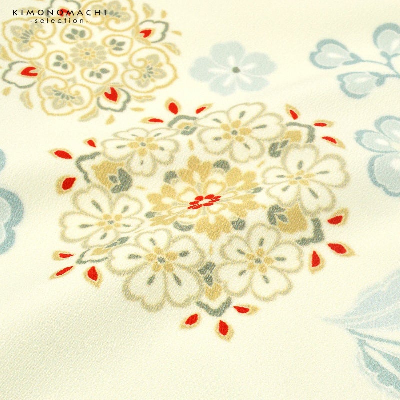 4. (卒業式応援SALE3/31迄)二尺袖着物 単品 絵羽「唐花 オフホワイト」日本製 お仕立て上がり レディース 洗える着物 二尺袖 着物 袴に合わせて 卒業式 謝恩会に 取り寄せ品<U>【メール便不可】